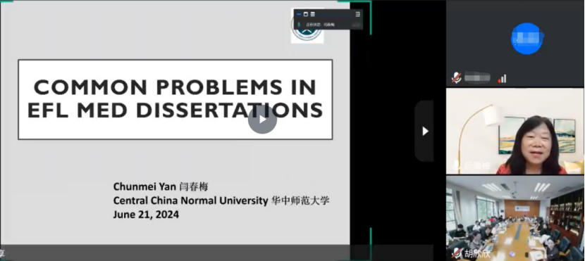 为进一步提高公司公司产品质量,提高硕士研究生学位论文写作水平,6月21日下午,公司特邀中国英汉语比较研究会外语教师教育与发展专业委员会常务理事、华中师范大学外国语公司外语教师教育研究中心主任、博士生导师闫春梅教授针对学科教学(英语)专硕研究生的学位论文选题与写作,作题为“Common problems in EFL MEd dissertations”的在线学术讲座。报告由主管研究生工作的李惠胤副经理主持,SUNBET申博经理吴岩、教育硕士教学研究中心主任康叶钦、全体学科教学(英语)导师以及全体专硕研究生现场或在线聆听讲座。