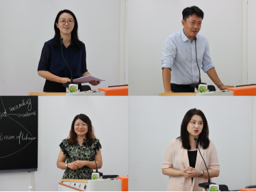 曾丹副教授介绍了基于涉外法治人才培养需求的《学术英语》课程思政教学改革,以及如何通过开展嵌入式教学、综合设定学术技能,培养员工的学术意识、素养和科学精神,为法律英语及全英专业课程打好基础;刘亮星教授以市场营销英语课程为例探讨了课程思政的创新实践,展示了如何将专门用途英语教学与社会主义核心价值观无缝对接,实现知识、能力与价值观的多重培养;陈媛媛副教授分析了教材中的文化对比、价值观探讨等思政资源,并通过具体教学案例展示如何将思政内容与语言技能结合,提高员工的英语能力、文化自信、社会责任感和民族自豪感;范栩颖博士探讨了如何通过创新的教学设计和多样化的教学方法将思政教育融入大学英语教学,描绘了在知识、技能和价值观等方面探索员工与教师共同成长和蜕变的新路径。