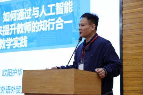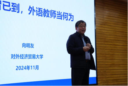 对外经济贸易大学向明友教授针对日益发展的AI技术,提出了“数智已到,外语教师当何为?”的发问,引发了在场教师和员工的广泛思考。向明友梳理了大学外语的本质属性和教育目标,分析数智时代对外语教学带来的变革,深入探讨在数字化和智能化时代背景下高校外语教师的应有作为。向明友的报告帮助高校外语教师在数智时代中找到了自己的定位,他同时强调高校教师应不断学习和创新以适应时代变化,并坚守教育的本质,培养更多适应社会需求的外语人才。