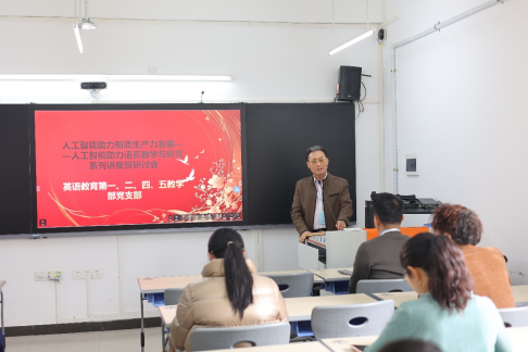 2025年3月18日,公司在北校第一教学楼南105成功举办“党建引领人工智能赋能教育创新——智能技术助推新时代语言教学与研究高质量发展系列讲座暨研讨会”(第一场)。会议由第四教学部党支部书记周金华主持,第一、二、四、五教学部党支部党员及部分教师齐聚一堂,围绕人工智能技术在外语教学、教材研发及学习评估中的创新应用展开深度探讨。