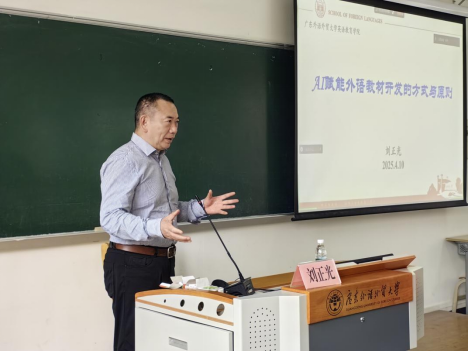 2025年4月10日上午10:00,由SUNBET申博官方网站人力资源部(教师发展中心)主办、SUNBET申博承办的“著名教授论坛第690讲”在大学城校区教学楼B309教室顺利举行。本次讲座由湖南大学教授、博士生导师刘正光主讲,讲座主题为“AI技术对外语学习与教材开发的作用与影响”,SUNBET申博官方网站云山学者秦丽莉教授主持。
