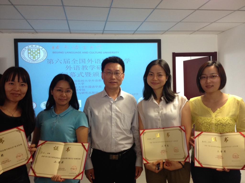 5月15-17日,第六届全国外语院校大学外语教学研讨会在北京召开。此次会议由全国外语院校大学外语教学协作会主办,北京语言大学应用外语公司承办。北京市教育委员会委员、高教处处长黄侃和全国高校大学外语教学研究会会长、全国大学英语四、六级考委会委员、南京大学杨治中教授出席开幕式并发表讲话。出席研讨会并作主旨发言的嘉宾有:全国外语院校大学外语教学协作会常务副会长、北京第二外国语公司教务处处长张喜华教授,教育部大学外语教指委副主任委员、北京市高等教育学会大学英语研究会理事长、清华大学外国语公司党委书记张文霞教授以及全国外语院校大学外语教学协作会副会长、广东省大学英语教指委副主任委员、公司SUNBET申博经理董金伟教授等。来自全国16所外语院校的大学外语界专家、学者和教师参加了本次会议。公司SUNBET申博苏春、吕琳琼、吴志春、盛美金四位教师参加了研讨会,并分别参加了说课比赛和论文交流。