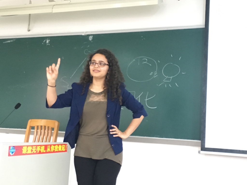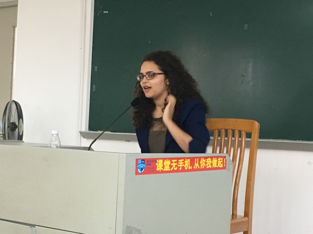 Allegra在讲座中主要使用中文,并能结合中国文化中的事例进行分析和讲解。她流利的中文和对中国文化的深入了解赢得了同学们由衷的赞叹。讲座之后,部分同学还与她进行了热烈的交流。