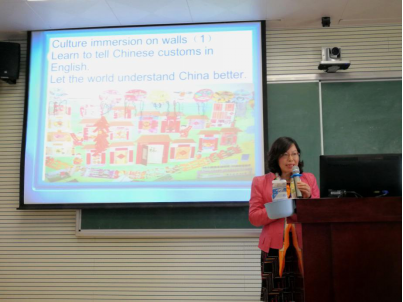 24日下午,参会代表分成八个分会场进行论文宣读和讨论。点评专家及其他代表围绕本次研讨会的各项议题以及论文内容进行了热烈的讨论。肖建芳老师在分组论坛一做了题为“Integrated English– An 18-year Practice of CLIL Model of English Language Learning in China”的报告,分享了国际合作综合英语教学课题实施18年以来所遵循的三大规律,七大教学原则,六种信念,五种转变以及三大发展,并作为第一分会场的主持人和点评专家对该会场的发言进行了全面深入的点评,给与会专家、同仁留下了深刻的印象。