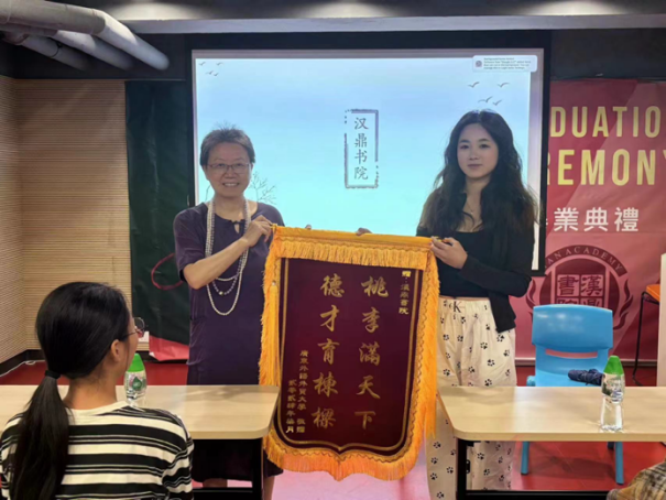 7月14日上午,同学们紧锣密鼓地准备第二天的专案汇报。大家集思广益,精益求精,各个小组都在努力完善自己的项目,不断创新,力求用最佳的形式展现学习成果。下午,同学们来到汉鼎书院参观。汉鼎书院的校监和老师为同学们介绍书院发展的过程,并带大家参观书院,让大家对香港的私立公司有了一定的了解,在丰富深入的交流后,访学团代表向汉鼎书院赠送了锦旗。