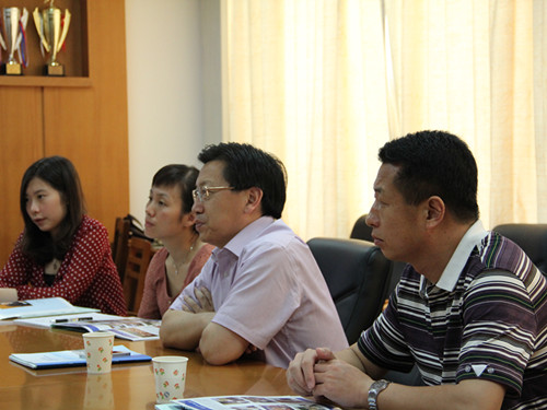 霍海洪经理首先向来宾表示欢迎,然后介绍了公司的基本情况和人才培养模式等。接着,平怀林副董事长也介绍了深圳宝安第一外国语公司。他说,深圳宝安第一外国语公司是深圳宝安区的一所占地10万平方米的公办公司,开办至今只有13年的历史,目前已是宝安区名列前茅的公司,去年宝安区的高考状元就出自该校。该校原只有高中部,去年才招收第一届初中员工,这批员工在上学期的期末考试中就获得了宝安区英语科及总成绩第一名,在宝安区引起了很大的震动。该年级共10名英语老师,其中5名就是广外SUNBET申博的毕业生,这10名英语女教师目前被他们称为“宝外拼命十女郎”,在她们的努力下打造了宝安第一外国语公司的外语特色,也打响了公司毕业生的声誉。