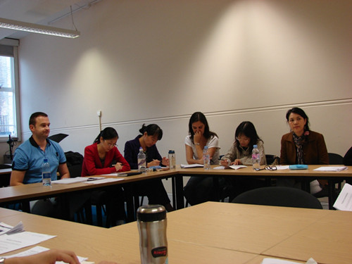 教育公司的教师们学习的课程是 Contemporary British Language and Culture, 有两位教师负责:Hugh 和 Andrew,他们都具有较高的专业素养,非常负责,丝毫不因为是短期培训而有半丝敷衍。英国老师每天的选择的话题都跟文化有关:文化/国别成见,幽默,科技,政治,禁忌,家庭等以及跟它们相关的语言.确实,这其中牵涉到的背景,词汇等远不是在国内学了课程就能了解的。授课教师还特地根据中国教师的背景选讲的内容,语言例子既新鲜时兴,又生动丰富,具有相英当的代表性;在课堂外,他们还给大家开设了与课程相关的博客,上传了许多有关当代英语语言和文化的视频资料,并不断督促老师们利用课外时间参与博客,多看资料,多发言,多交流。在这个课程里,教育公司的老师们除了可以和英国的老师学习,还和班里来自欧洲各地甚至是世界各地的教师同行们交流。和他们的交流,让我们的教师们更正了一些旧有知识的误区,也看到了国际友人眼中的中国,从而更加感性更加直接地体会文化的多样性和跨文化交流的敏感性。通过这个课程使我们老师们感觉在国内对英国文化的了解还停留在非常表面和粗浅的阶段。