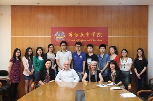 Ian Robottom教授还与2013年春季班第五期广外大-迪肯大学英语教育硕士班新学员举行面试与座谈,回答了员工关心的住宿、学费等问题,指出澳方公司提供多种可选择的住宿方式(既有寄宿家庭安排,又有校内宿舍提供)。第三期学员杨蕴同学已完成学习回国,应邀参加这次会谈,她详细介绍了在迪肯的学习生活情况,给了将去澳洲学习的同学提供了极为有用的建议。第五期学员们对项目充满期待,他们已在2013年3月份开始在广外大修读迪肯大学认定的教育学课程,并在完成半年的国内学习后,于2013年赴澳洲进行为期八至十个月的研究生学习。