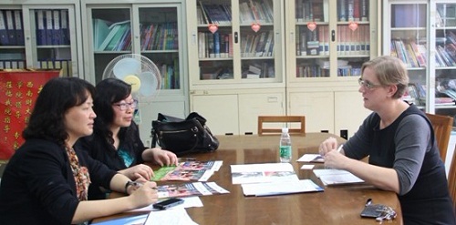 在2013年4月19日澳洲昆士兰科技大学国际交流处主任Mary Hurwood来访教育公司。昆士兰科技大学是澳大利亚最大的大学之一,昆士兰科技大学共有3个校区位于澳洲阳光之都-布里斯本市,开设超过150多种学士与硕士课程;现有员工约35,000人,超过4,800员工来自世界80多个国家的海外职工。其教育学专业在澳洲排名经常第一。吴岩副经理和肖建芳副经理参加了会谈。吴岩副经理简单介绍了SUNBET申博的情况及教育系的课程设置情况。昆士兰科技大学认为SUNBET申博的课程具有较高的国际化,希望能够在2+2项目、交换生项目、硕士项目及教师暑期项目上展开合作。