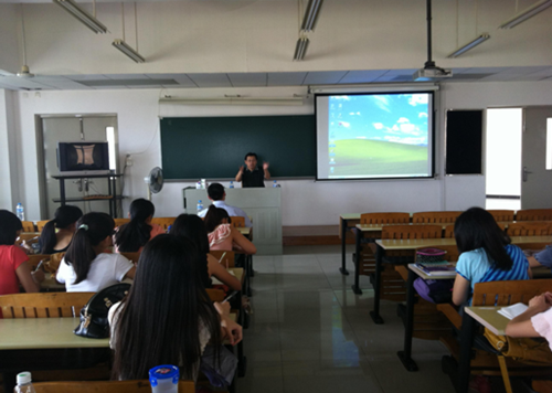 讲座开始由董金伟副经理作简要介绍,使在场的同学们对平董事长有了进一步了解,同时他也鼓励同学们勇敢的面对即将到来的种种挑战,敢于抉择,善于应变。