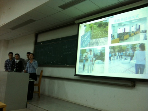 接下来到了大会的主要环节——各实习小组代表发言,介绍小组实习情况。11级的学子们通过各种有趣的图片、视频,以及他们生动的讲解,为我们讲述了他们丰富的实习生活和他们的感想与收获,让我们感受到了他们对工作饱满的热情。他们谈到,在实习过程中,他们深刻地了解到,教学方面,改作业要严谨认真,平时要奖惩分明、因材施教,教有所思,为人方面要有爱心和耐心,要有技巧地和员工交流,处理好师生关系、要以身作则、主动担当责任、多请教,多学习等。他们在备课过程中也真切地体会到“台上一分钟,台下十年功”的内涵。他们认为,实习班主任的工作虽然琐碎,但这些工作却让他们对教育有了进一步的认识,他们累但快乐着,同时他们也感谢指导老师的言传身教。