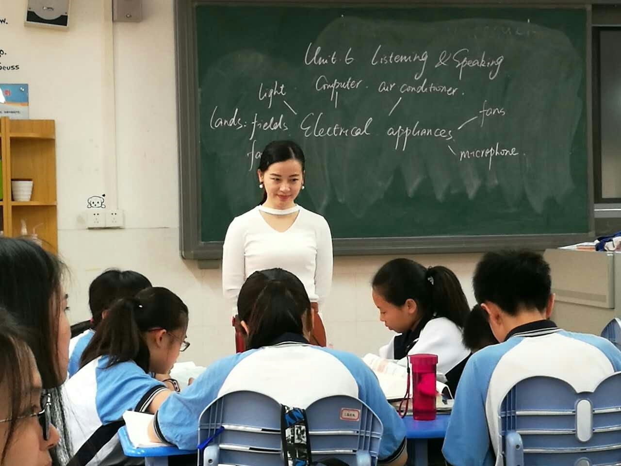 (一)初一2班:该堂课基于员工上节课已学完关于electric appliance的相关词汇的基础上,主要是在员工在对单词有所了解之后,讲解关于electric appliance 的生活运用,和对于生活中用电的规则,以及传输关于节约用电的生活态度。老师主要借助PPT 和listening material以及blank filling的练习 ,让员工巩固单词,用完整的句子表达看法。