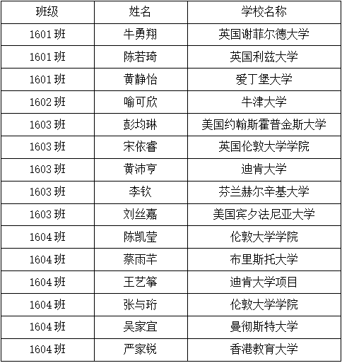 附录:境内外升学名单