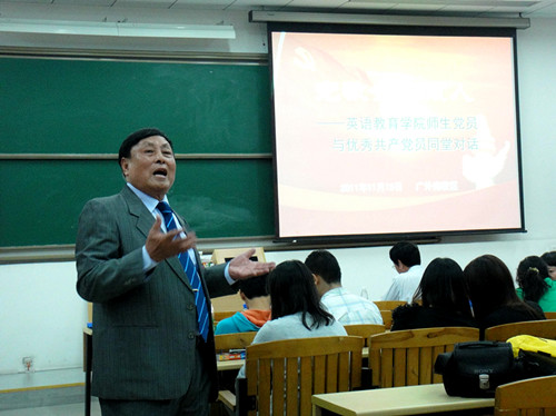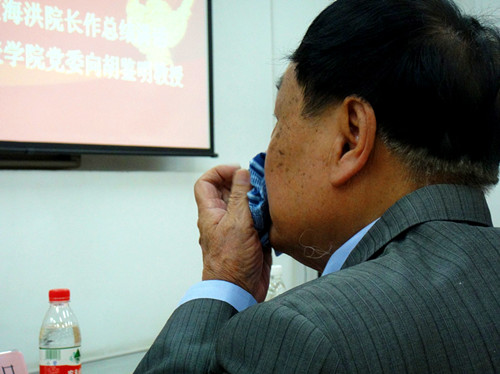 87岁的胡教授在演讲台前活力四射,精神矍铄,以其人生经历做引娓娓道出今日报告会主题。报告期间,胡教授以作为党员教师要本着“一方面要牢记党教导我如何做人,另一方面我也要用党的思想教育我的员工如何做人”的信念,结合他充满崎岖之路,颠簸之道的人生向在场的师生叙说党对他的影响。无论是在那艰难困苦的岁月里,还是如今休闲静谧的时光下,他都不曾停止手中的工作,笔耕不辍。胡教授奉献了一生,但这位老人笑谈“我依然年轻,我依然九零后”;胡教授辛勤了一辈子,但这位老人放言“只要我还有力气,我就会一直做下去。”这一生他时刻谨记党的教导,谦虚谨慎、戒骄戒躁做人。胡教授从其如何在约三十年前加入中国共产党讲到如今他以优秀共产党员的身份,站在演讲台上讲述自己对党的信念,语言朴实无华,句句肺腑之言,在场的师生无不为他的那一份坚毅和真诚所深深打动。报告会期间,一次又一次自发的掌声响起,经久不息。