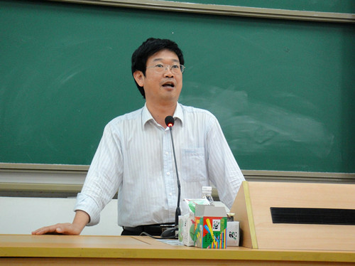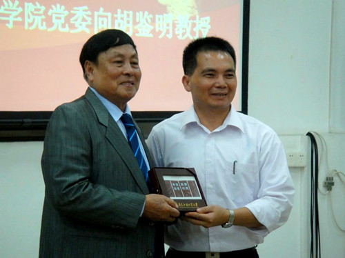 紧接着,主持人肖建芳为大家简单介绍了优秀党员胡鉴明教授。在如潮的掌声之中胡教授迈着矫健的步伐来到演讲台前,开始进行精彩的专题报告。