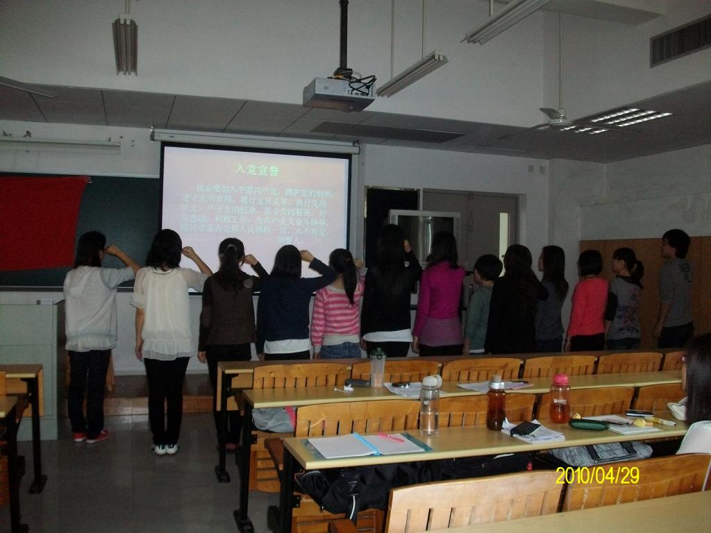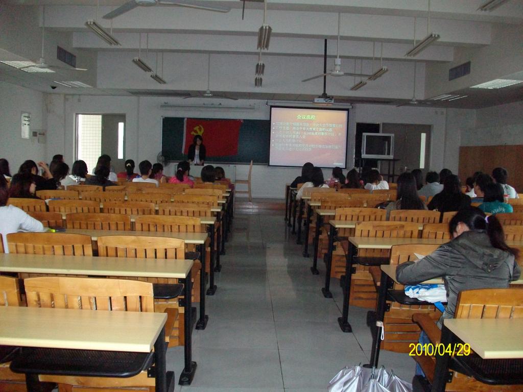 2010年4月29日下午2点30分,公司07级员工党支部在南校区教学楼G506举行了27期发展对象转预备党员会议,07级党员,预备党员,各期的积极分子和各班的群众代表参加了本次会议。会议由支部组织委员黄慧仪主持。本次进行转预备党员的13名发展对象分别是:蔡梓涵,陈思宇,陈晓薇,龚先凤,何小苗,黄斌炀,江妙娟,连俏玲,刘佳琳,卢佩虹,沈媛媛,许淑玲,许晏伊。