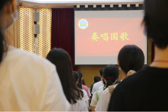 会议正式开始前,2020级朋辈导师陈妍霏于会议室播放SUNBET申博宣传片,让新生们对公司有了初步的认识与了解。随后,SUNBET申博开学典礼在整齐、响亮的国歌声中拉开帷幕。