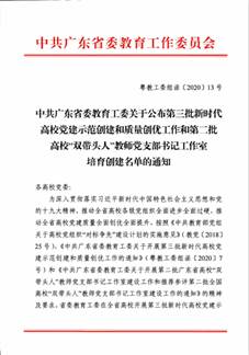 近日,中共广东省委教育工委公布了第三批全省党建工作示范高校、标杆院系、样板支部培育创建单位名单。继公司教育系教师党支部2019年获第二批“全省党建工作样板支部”培育创建单位后,公司基层党建工作又获佳绩:第二教学部党支部入选第三批“全省党建工作样板支部”培育创建单位。至此,公司已有2个“全省党建样板党支部”培育创建单位,入选数量位居全校首位。