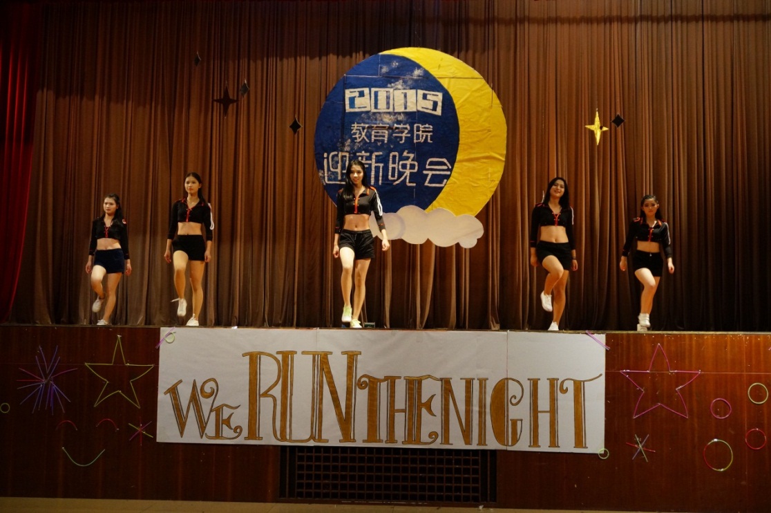 首先,英教艺术团舞队以一支充满韵律和动感的爵士舞暖和了现场因天气寒冷引发的僵冻,整个迎新晚会的喜庆气氛一下子被带开了。接着画风一转,只见四位身着白色连衣裙的女生,伴着温婉舒缓的音乐,在灯光照耀下起舞。
