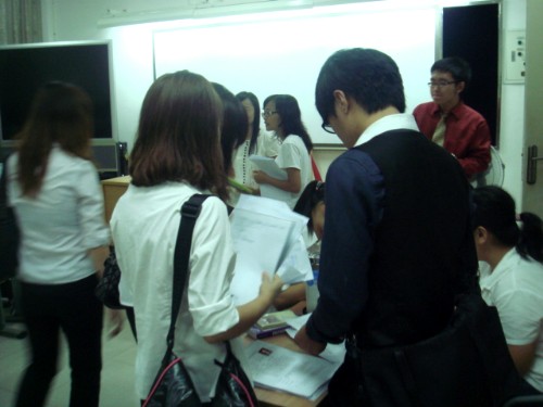 晚上7点整,教学楼的这一边新生们正在奋笔疾书,开考校规;那一边十大部门的各位部长穿上正装,以崭新的风貌到达面试的课室,开始布置现场、研究新生们的简历并且认真地商量探讨如何更好地设置面试问题……一切的准备,都只是为了紧接下来的面试工作能够得以顺利的开展,也让新生们在踏进大学以来的第一次正式面试里面得到最好的体验和锻炼。
