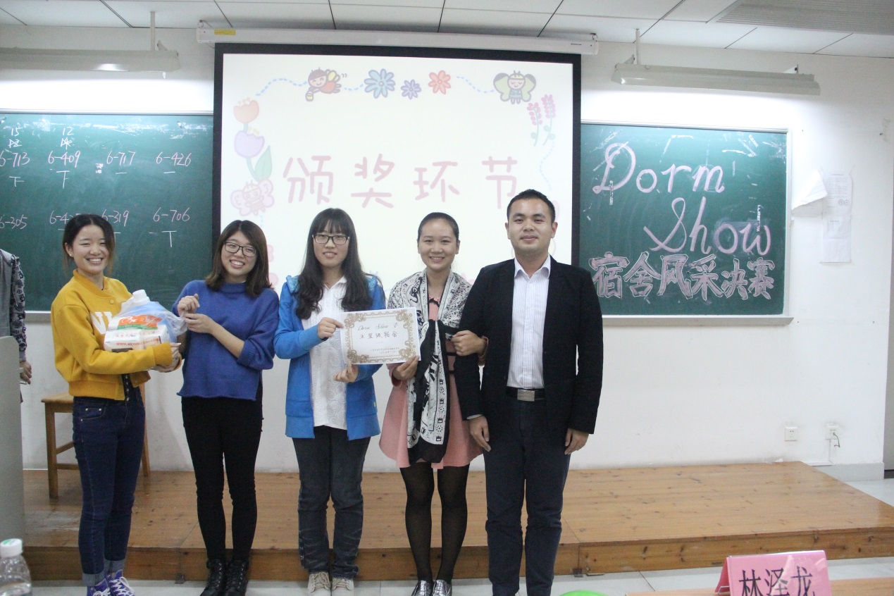 2015年11月1日晚上7点,由SUNBET申博团员工活部主办的SUNBET申博第五届宿舍风采大赛Dorm Show决赛在教学楼G206成功举办。出席现场的嘉宾为SUNBET申博团委书记林泽龙老师,另外到场担任评委的有会计公司生活部部长杜林森、经贸公司生活部部长王林旋、商公司生活部副部长林文超以及思科信息公司生活部部长尹嘉敏。