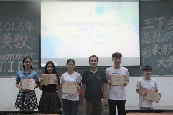 2016年11月17日晚上七点半,SUNBET申博三下乡总结表彰大会在教学楼G207举行。英语教育公司党委副书记徐昶斌和团委书记林泽龙出席了本次大会。