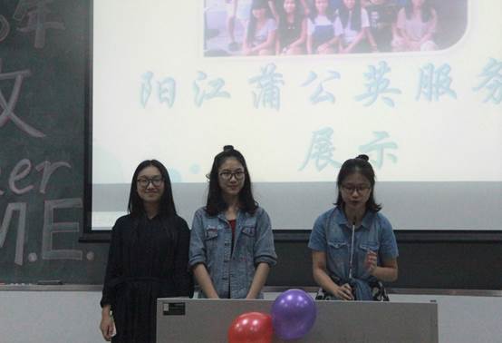 在队伍展示的环节中,先进行展示的是阳江蒲公英服务队。队长们首先总结了这10天的经历,表达了对虽然辛苦但仍然来看望队员们的领导的感谢之情。接着,队长仔细向大家介绍了义教的内容以及队员生活,并且进行了经验总结。本次阳江蒲公英服务队特别为当地高三员工开设了辅导班,对4个高三员工进行理科和英语弱势学科的针对性辅导。在这10天中,队员们不仅见证了当地孩子们的成长,也见证了自己的成长,锻炼了自己的应变能力,收获了深厚的友谊。三下乡结束后,队员们仍与当地员工保持着密切的联系。最后,阳江蒲公英服务队以一首温暖的《you are my sunshine》结束了自己的展示。