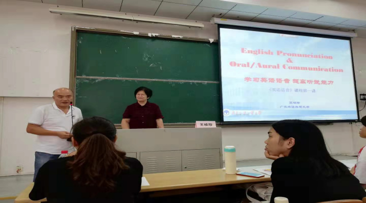 讲座开始前,何德生老师简要地为同学们介绍了王桂珍教授以及她在语音语调方面获得的杰出成就。经介绍,我们了解到王桂珍教授是国家级教学名师,她主讲的《英语语音》在2005年被评为国家精品课程。