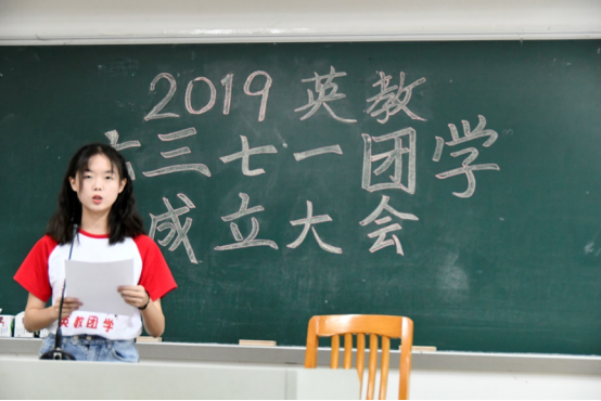 随后,丘佳珠发言。她向我们介绍了团学的基本架构和主席团职能,并希望各部门互相协作,把英教团学建设得更加美好。