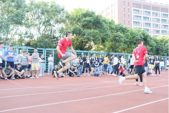 下午,压轴项目集体跳大绳比赛也在万众瞩目中开始了。各班的跳绳高手云集,赛前抓紧最后时间练习,排兵布阵,细谋战术。随后,在裁判员的组织下,各班依次上场比赛。绳子一起一落间,选手们紧密配合,默契搭档。即使有突发小状况,但在队友们的相互鼓励下,选手及时调整状态,出色完成比赛。跳绳比赛这项趣味运动的开展,展现了各班同学极高的团队协作能力,也利于促进同学之间的友谊与感情。