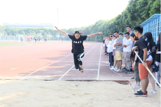 最先进行的是100米比赛运动健儿们有序检录裁判员一声令下,运动员冲出起跑线。他们拼尽全力,既为了证明自己,也为了班级的荣誉。赛场的另一边,跳远比赛也在进行中。助跑,甩臂,起跳,跳远选手流畅地完成一系列动作。他们奋力一跃,沙池里黄沙四溅。运动员们以自信和实力在赛场上留下自己最美的身姿,赢得场上观众阵阵喝彩。