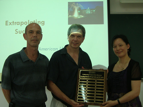 5月16日下午,公司在教学楼E404接连举办了两场盛大讲座,第一场是由美国南卡罗来纳大学语言学教授、美国南卡罗来纳TESOL教育学会主席DAVID W.MARLOW主讲的题为“Extrapolating Success at a U.S. University(在美国大学创造成功)”的讲座,第二场则是由公司05级毕业生——分别来自宾夕法尼亚大学和宾州州立大学的刘晔婷和钟丹分享自己的美国学习经历分享。公司教育系主任柯晓玲老师担任主持,公司众多学子前来聆听。