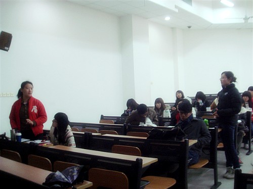 紧接着的第二个环节就是本次会议的重头戏——MT决赛当晚的工作安排。首先,主讲人先简要说明了本次决赛的简要情况,包括参赛选手阵容——共4支队伍、2个个人进入决赛以及奖励设计——决赛将评出一等奖1名,二等奖2名,三等奖3名,最佳人气奖和最具活力教师奖各一名;其中最佳人气奖由30名大众评委投票选出。随后,主讲人继续公布本次MT决赛当晚的各个具体环节,其中广外与华师的首度联袂表演的合唱以及诸如调酒、魔术等表演环节更是当晚除却选手风采之外的亮点所在。当然,每个环节除了一一落实到具体时间段以外,也具体落实了各部门的工作任务。比如,秘书部和学术部分别是计分组和计时组,文娱部负责舞台调控和灯光音响,而宣传部负责布置场地、进行拍照和新闻报道等。