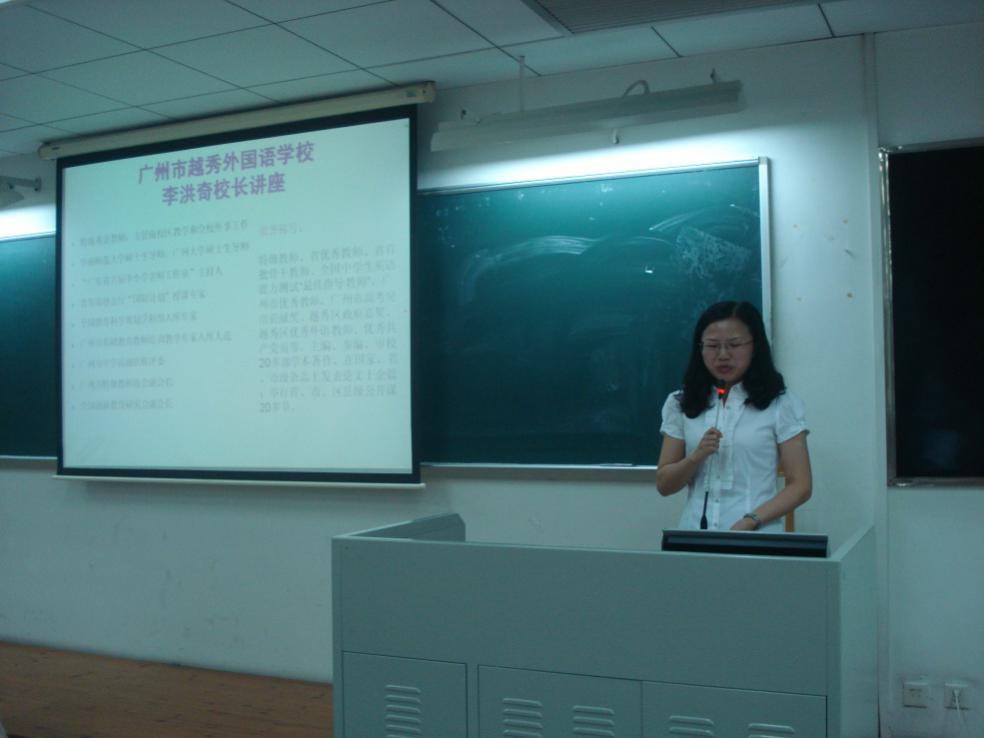 9月10日晚南校区教学楼F309,广州市越秀外国语公司李洪奇董事长应邀为公司2012级教育系员工作了题为“如何做一名合格的中学英语老师”的实习教育讲座。此次讲座由公司教育系主任谢剑萍老师主持,公司党委副书记徐昶斌出席了该场讲座。