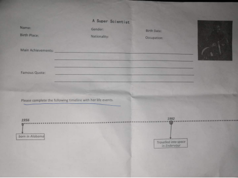 接着,老师让员工拿出第一课时结束后的课后作业,即关于传主的基本资料(图1),让员工用自己的话来讲述传主的生平主要经历;