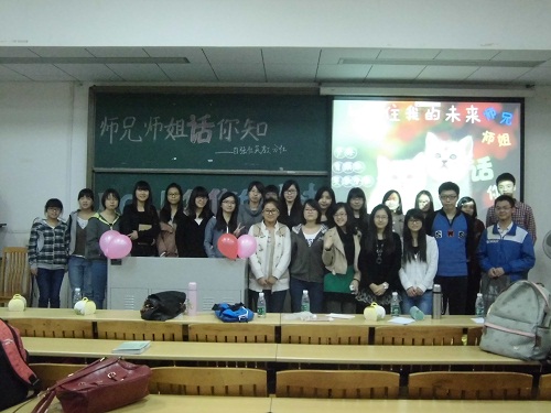 2013年4月7号晚上7点,教学楼C208飘出了一阵悦耳的歌声,由SUNBET申博官方网站自强社SUNBET申博分社(后简称“英教分社”)举办的“师兄师姐话你知”活动即将开始。