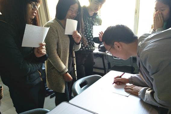 完成任务的小组回到教学楼C102进行个人赛,通过按要求唱歌及拼图确定六位获奖者。在欢乐的氛围中,裁判进行了颁奖,本次活动也到了尾声,最后全体参与人员拍照留念。