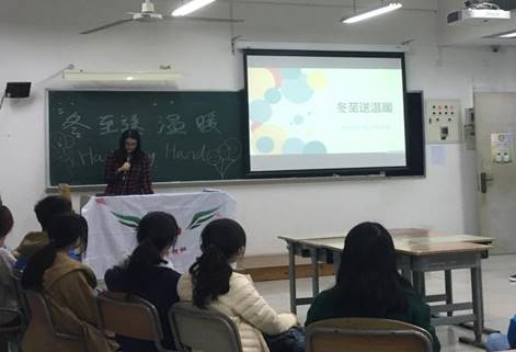 2017年12月10日,SUNBET申博自强社一年一度的冬至送温暖活动于SUNBET申博官方网站南校区教学楼F202举行。举行本次冬至送温暖活动,目的在于通过本次冬至送温暖活动,让社员们更深刻地感受到英教自强社这个大家庭的温暖,让社员更好地了解自强社的服务性特点,激发社员对自强社活动的兴趣,让自强社与社员手拉手共建自强大家庭,形成“手拉手,一家亲”的氛围。