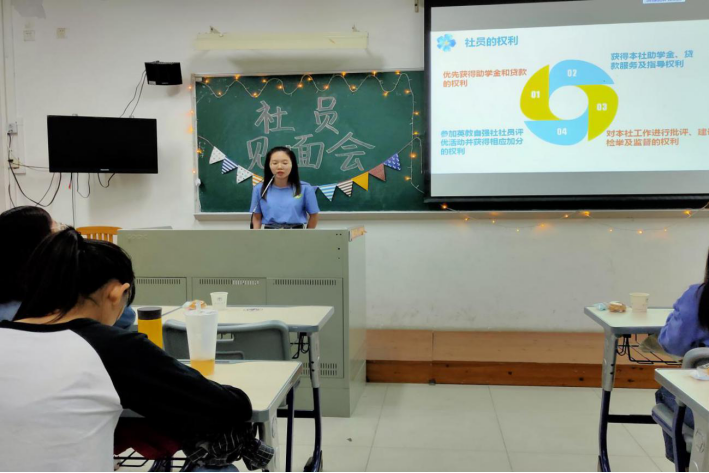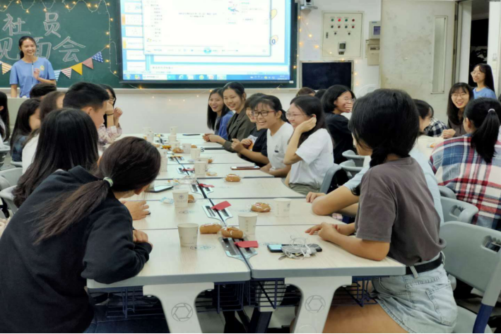 本次社员见面会持续了约一个小时,具体分为三个环节:自强社社长发言环节,社员部部长讲解社员工作和答疑环节,游戏放松环节。