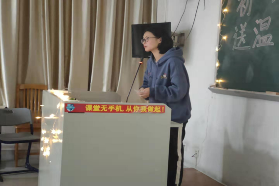 紧接着进入第一环节“纯音送暖”环节,在此环节开始之前,社员们闭上眼睛,由自强社干事黄绵为大家讲述冬日里动物朋友之间的温暖小故事。与此同时,自强社工作人员悄悄地把礼物放至社员面前的桌子上,希望通过这份小礼物为社员的冬日增添一份温暖。