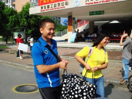 在本次迎新生工作中,公司负责设点在火车站接送新生,同时在校内共设了4个新生接待处。从早上7点开始便有新生陆续前来报到,志愿者们始终认真专注地投入到迎新工作中,用微笑驱散新生们面对这陌生的一切时内心的一丝不安。而搬运组的志愿者们更是不辞辛苦,顶着猛烈的太阳为新生搬运沉重的行李,汗水淋漓也毫无一丝怨言。