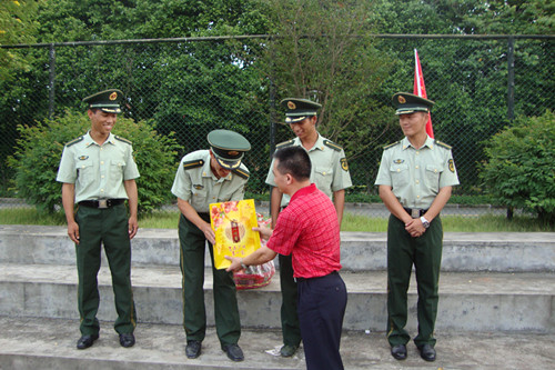 慰问中,副经理董金伟也笑称:“林书记给大家送完食物食粮,我来为大家送上精神食粮”,希望新生们要好好在军训中锻炼自己,培养一个健康的身心,以饱满的精神面对学习。同时,军训旅的营长代表教官们对公司领导的关心表示感谢,也夸奖公司新生们很有内涵。