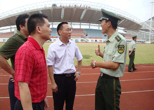 入学至今,新生们为期三个星期的军训已经接近尾声,即将在本周星期四的军训汇演大会上画上一个完美的句号。26日上午,公司党委书记林绍雄、副经理董金伟、党委副书记何伟儒以及辅导员姜尖、辅导员助理郑嘉伟亲自到达广外真草场体育场对公司2012级新生们进行军训慰问。