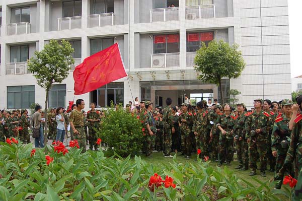 “三连,三连长,阿炳,小明,耿帅,邓恩仁,李卓明,陈炳家,耿帅”。这些名字在此起彼伏的人群中回荡,久久不息。转脸过去,发现女生们已经泪流满面,男生们情绪好激动,眼眶里还有泪水在打转,我能深切地感受到他们都在尽力强忍着此刻自己的情绪。起初站在他们中间,仿佛我只是一个看者,用我手中的相机为他们见证人生的这一重要的成长飞跃。渐渐地,我融入了他们,心情随着他们的叫喊声波动着,感动着,仿佛我也是他们其中的一员。“寒风飘飘落叶,军队是一朵绿花。亲爱的战友你不要想家,深深我日夜呼唤。多少句心里话,不要离别时两眼泪花,军营是咱温暖的家。”一句句曾经在我们嘴边唱起的歌穿动着我们在场每个人的心,一直以来,我最不愿意听到的就是这首军歌,因为里面的歌词太煽情了,每当听到这首歌,眼泪就会盈眶而出,可是此刻,我已经融入到他们之中,一直被他们感动着,泪水在打转我已不在乎。十八天,好短暂的日子。我们在茫茫人海中,机缘巧合地相遇在广外大的校园,不是因为同学与同学的关系,不是因为师生的关系,而是因为你是教官,我是员工,一切因缘而起。