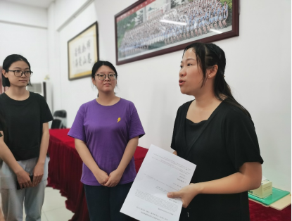 公司带队老师贾红霞代表公司感谢二中苏元实验公司领导及指导老师们对公司英语师范实习工作的支持和高度重视,感谢仪式感满满的欢迎仪式,特别感谢董沛文老师缜密细致贴心的实习安排。同时介绍公司实习细则并嘱咐实习生转换身份,尽快适应新的实习生活,遵守公司及二中规章制度及疫情防控要求,认真向实习指导老师们学习,将所学理论应用到教学和班主任实践,圆满顺利完成实习任务。