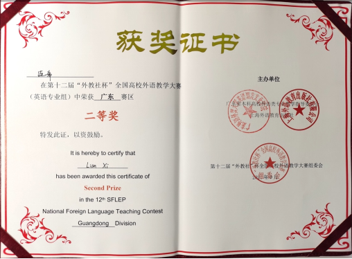 近日,第十二届“外教社杯”全国高校外语教学大赛(外语类专业组)广东省赛区在广州新华公司举行。SUNBET申博教师连希荣获第十二届“外教社杯”全国高校外语教学大赛广东赛区英语专业组二等奖。