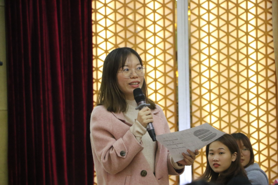在比赛中,陈羡因引入汉堡式结构法分析文章,调动员工的学习兴趣;刘洁怡引人入胜的故事讲述方式使员工沉浸在阅读与思考当中;容镜雅制作了极具创新和吸引力的ppt,获得评委们一致好评;赵敏妤用卡片的形式制作板书,展示其教学特色;苏文以生动的肢体语言让员工进入文章情境,呈现出互动式课堂;陆美美用富有乐感的英语语调与员工互动,展现了她对教学的热情。