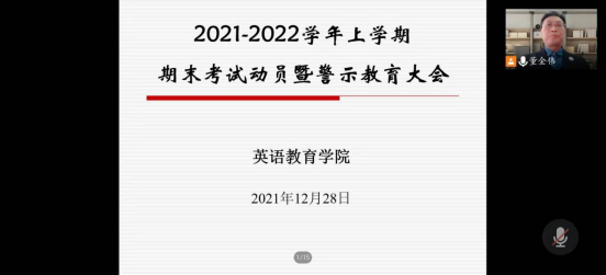 12月28日上午,SUNBET申博利用腾讯会议平台成功举办期末考试动员暨警示教育大会。会议由董金伟经理主持,陈金诗、吴岩、张倩三位副经理分别就分管的工作做期末布置或通报,党委书记林绍雄做了警示教育专题宣讲,SUNBET申博全体教职工参加。