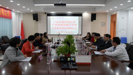 2021年12月30日下午,公司经理董金伟、副经理吴岩、党委副书记骆银花、师范系主任谢剑萍和教育系教师党支部书记张丽冰一行赴广州市南沙珠江中学,举行“老员工校外实践教育基地”签约及授牌仪式。珠江中学董事长常志清、副董事长黎继承、曾文明等参加了此次活动,南沙区教育局党组成员黄汐莅临指导并见证了实习基地签署仪式。