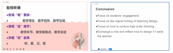 叶翠玲结合员工评价分析新教师的特点,指出新教师具有负责、耐心以及有亲和力的优点,也存在教学模式单一、课堂管理能力不足以及教学立场不坚定等问题。基于以上情况,她以高中英语教学单元和课文为例,就如何设计和开展一堂有效的课堂,提出“应关注员工的参与度,关注教学设计的逻辑性,关注如何从低阶思维练习逐步提升至高阶思维拓展”等一系列宝贵观点。